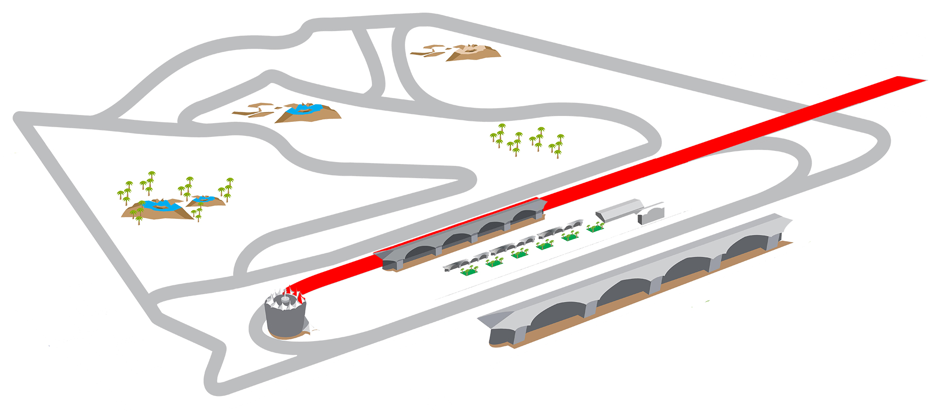 - Height between the lowest and highest points on the circuit: 0 to 18m
