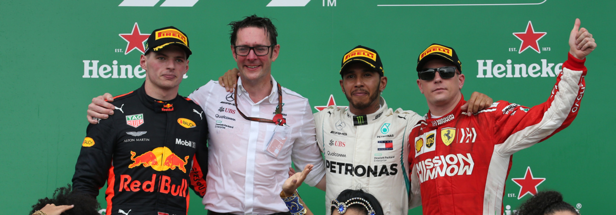 Hamilton had surrendered the lead to Max Verstappen of Red Bull Racing on Lap 40, but was later gifted back the position after an incident between Verstappen and Esteban Ocon of Force India just four laps later.