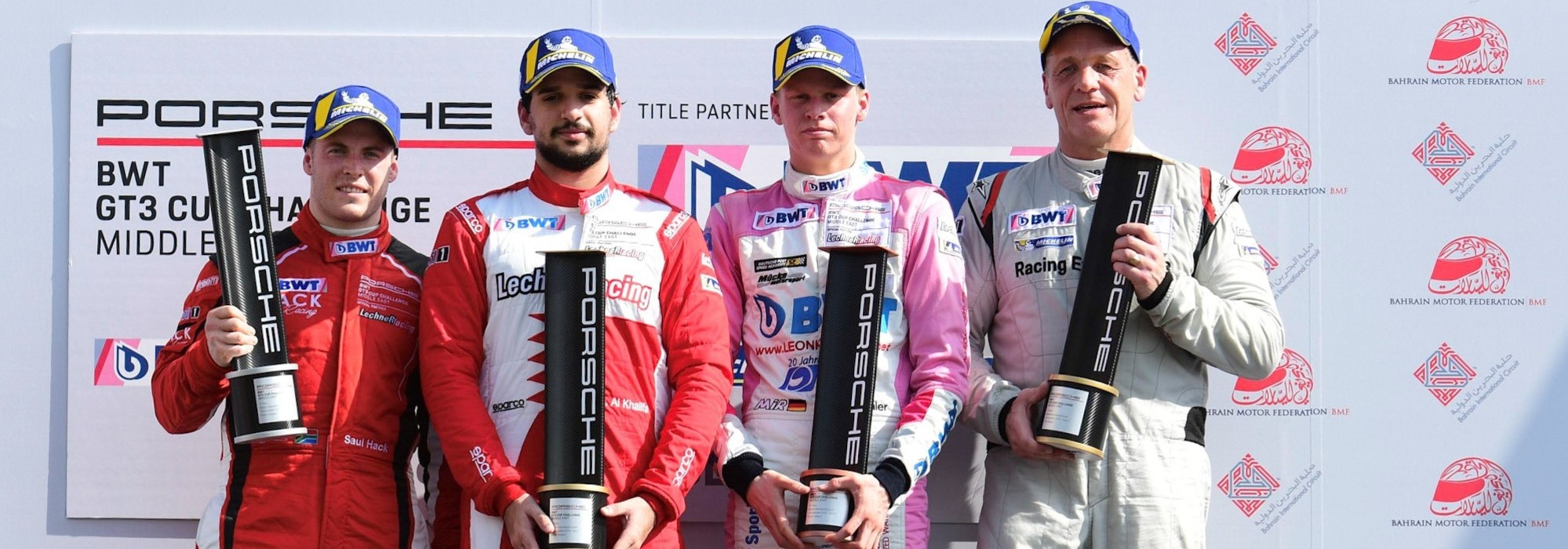 Al Zubair won Race One in the Porsche BWT GT3 Cup Challenge Middle East, while Defourny triumphed twice and Chadwick once in the visiting India-based MRF Challenge.